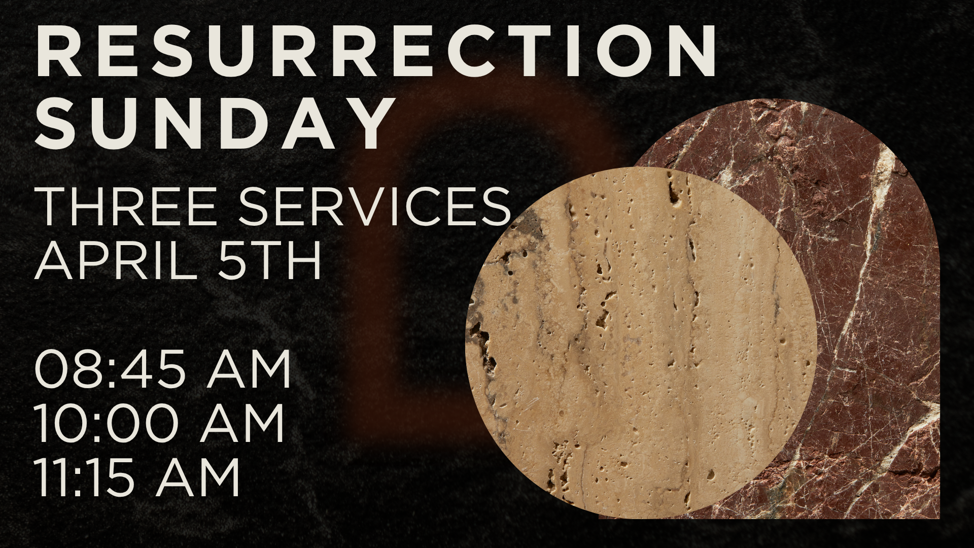 On Resurrection Sunday, we will have three services.They will be at 08:4510:0011:15